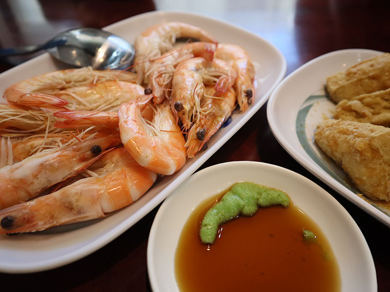 若沾點隨盤附上的醬油芥末更能逼出白蝦原本的鮮甜肉質呢~