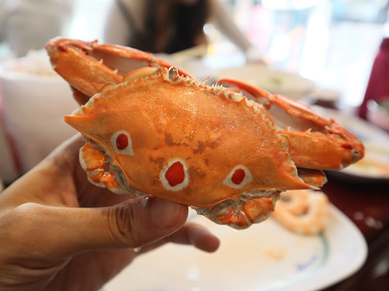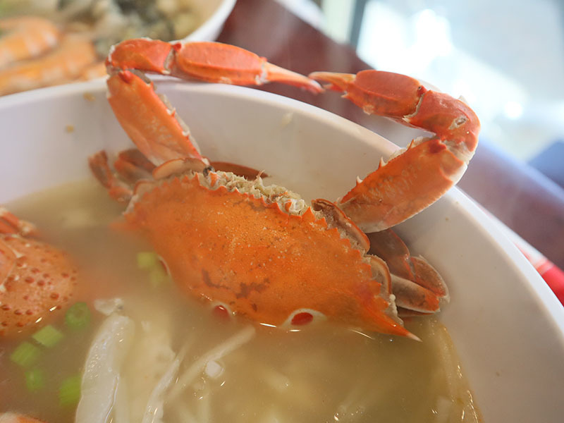 一整隻螃蟹在碗裡是真的滿驚人的~而且還是吃肉質的三點蟹~記得在南寮秤兩賣也是3-4隻就要500元了呢~