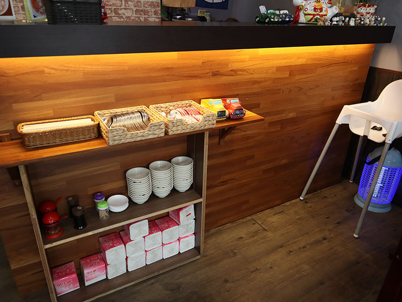 店內提供重複使用的塑膠碗筷、湯匙.也有提供小小孩的兒童座椅~環保也對親子友善~