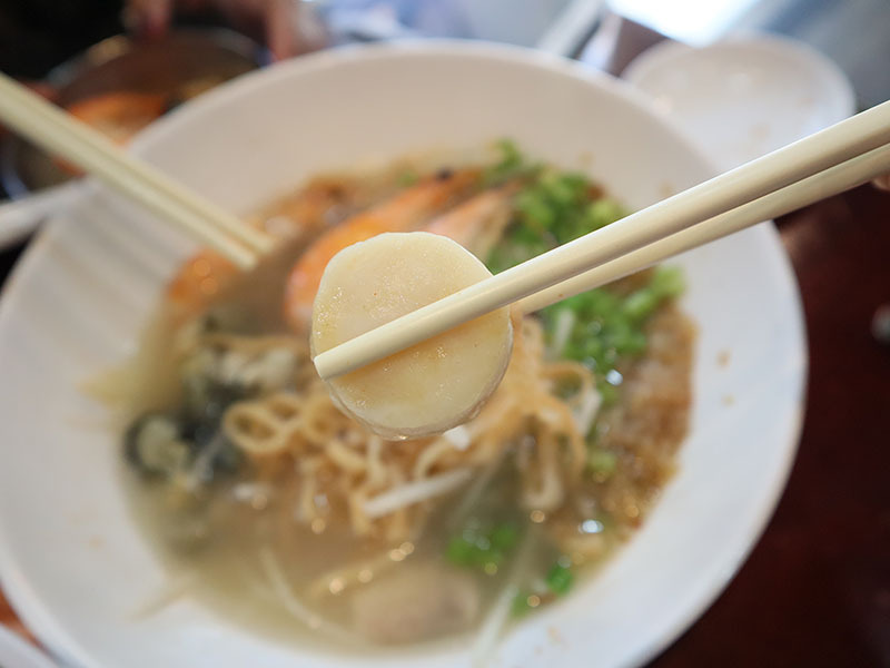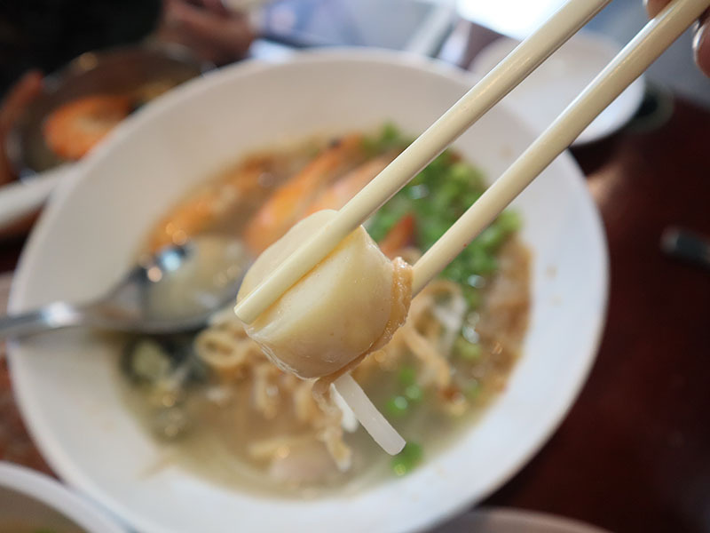 當日現熬的湯頭加上油炸的意麵麵條,吸附滿滿的濃郁湯汁吃起來香滑又軟Q,越吃越涮嘴呢.