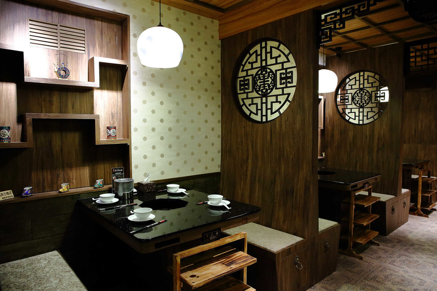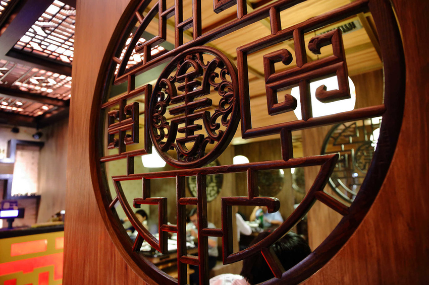 從店門口、到店內,氣派典雅的中國風裝潢,有一種時空錯亂的感覺,好像回到了古代