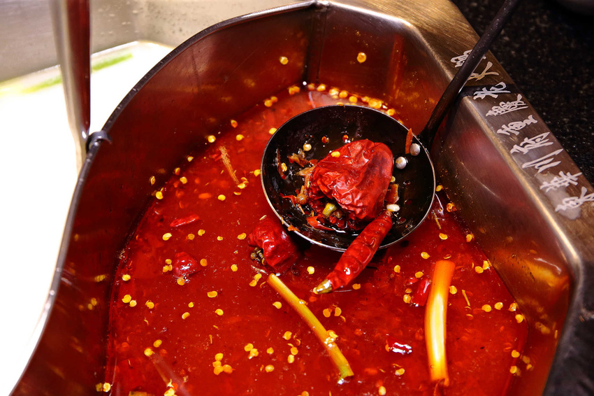 鍋底特別以四川埤縣豆瓣、雞心椒、二條筋、朝天椒、燈籠椒與大紅袍搭配