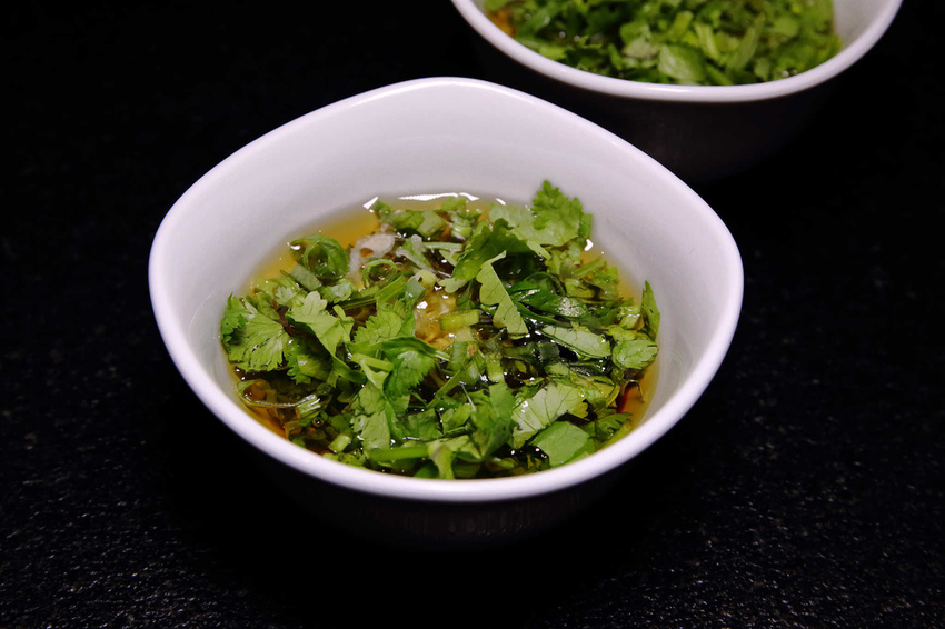 沾附以香油為基底的沾醬,重現鮮、香、麻、辣的獨特口味!