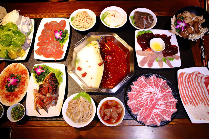 東華川府重慶老火鍋發源於山城重慶,麻辣鍋底以全牛油為基底不加一滴水的一次性鍋底,