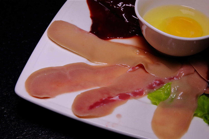 腰片切得又大又薄,看起来晶瑩剔透,只需要下鍋涮一下,很嫩也很彈,