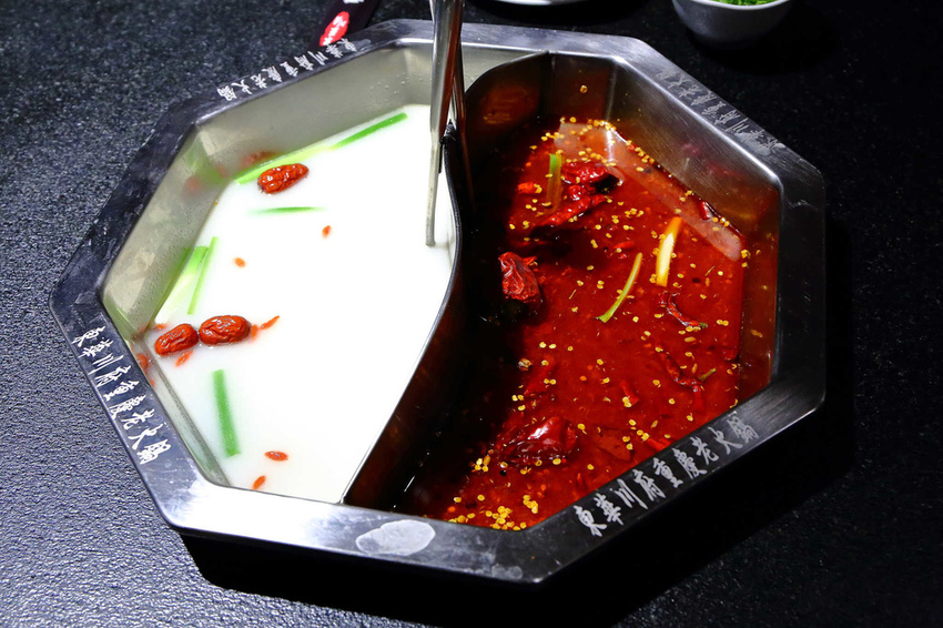 重慶鍋底+白湯鍋底,喜歡吃火鍋可以一次就嘗試到不同的湯底