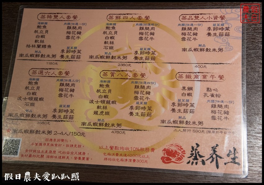 蒸養生蒸氣鍋當然以蒸氣餐為主,有二到八人套餐可選,最便宜雙人小資餐只要400元起