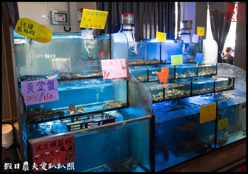 海鮮都是新鮮直送,水族箱裡有黃金蟹、玫瑰蟹、藍龍蝦、波士頓龍蝦等,新鮮看得到