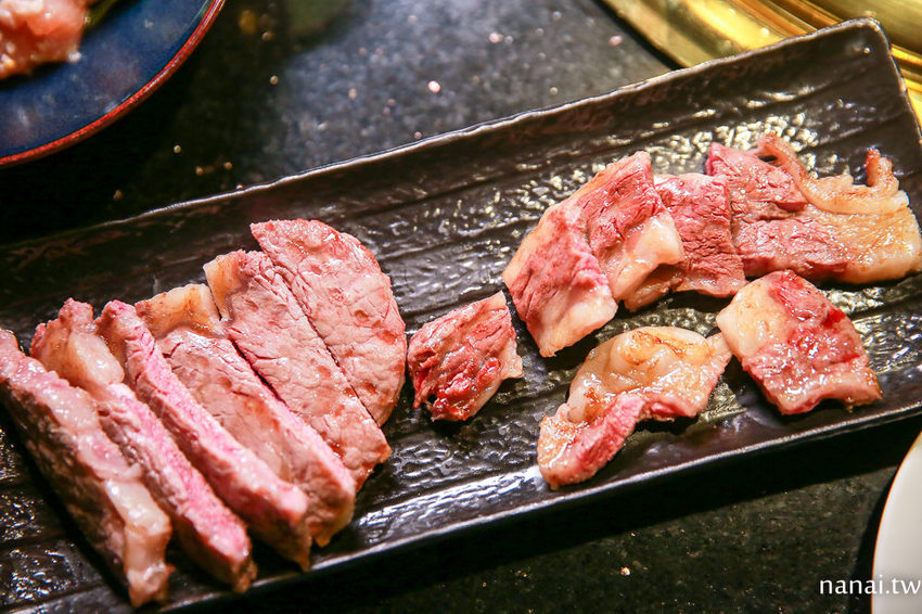 雙眼盯著烤盤,觀賞著和牛由紅轉白的畫面,這時空氣中瀰漫著香氣誘人的油脂香,一口咬下整個口腔都是迷人油脂,肉質鮮嫩多汁,吃完好滿足阿!