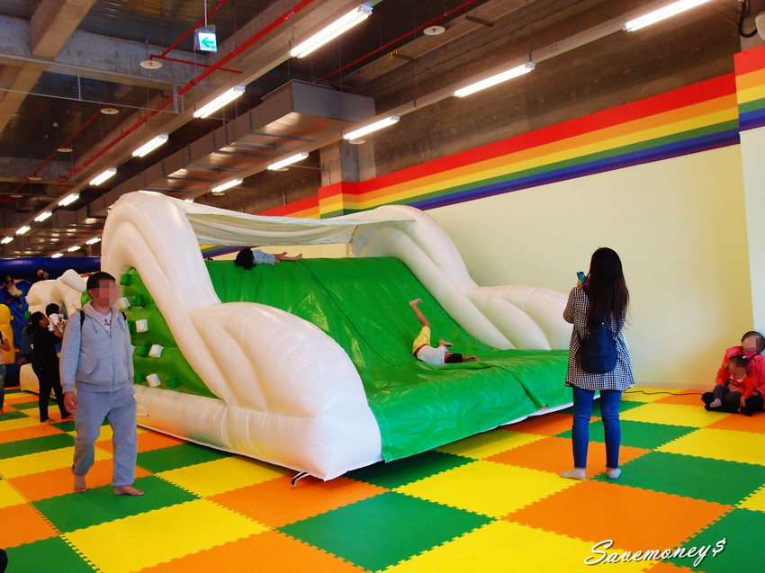 這邊的大型氣墊區也是小孩發洩精力的好地方,或滾或爬都有地墊保護,安全得很