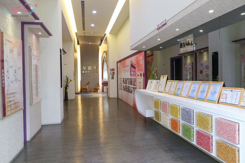 參觀完製程,開始進入館內…首先看到的是”卡普秀大廳”,「卡普秀時空膠囊觀光工廠」是一座同時取得 ISO22716及GMPC 國際品質雙認證的合法生產工廠