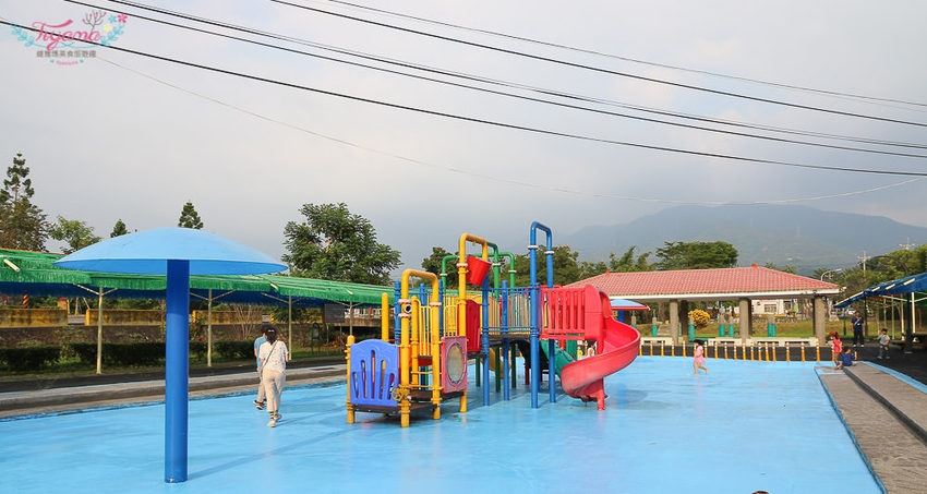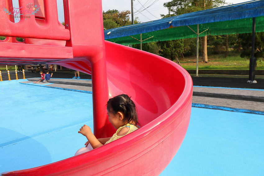 再往後走經過”竹崎風雨球場”就是我們的目的地「親水公園兒童戲水區」,因為已經接近冬天並沒有水池,單純讓小朋友玩設施!!對了…右邊走3分鐘就是「竹崎車站」唷,喜歡的朋友可以順便去走走拍照