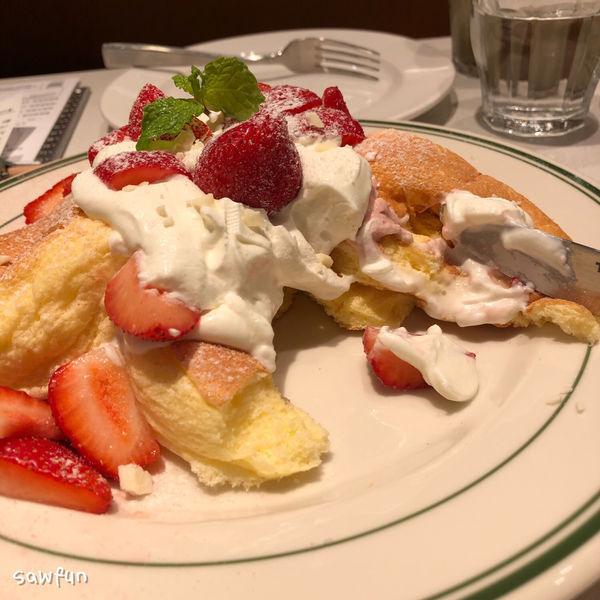 鬆餅有蓬鬆但口感介於空氣感跟雞蛋糕