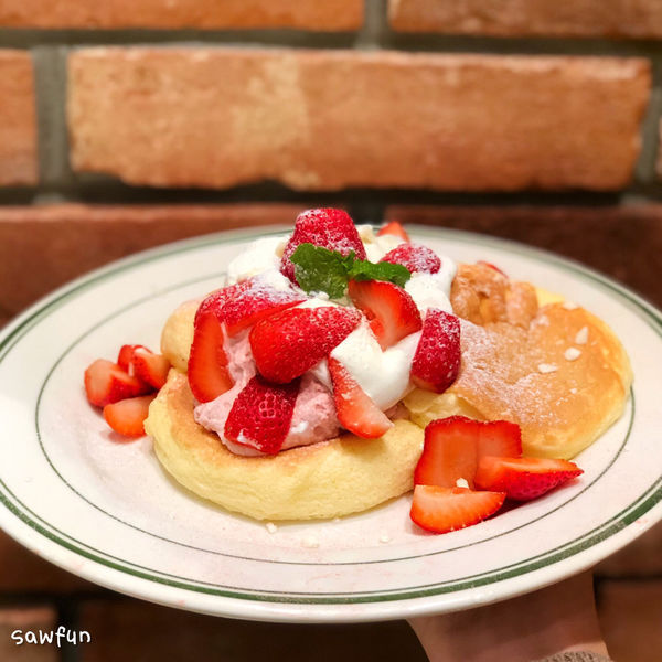 草莓搭配鮮奶油X草莓醬X白巧克力碎片X糖霜