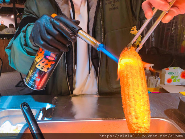 裹完起司粉還要再用火焰炙燒一下,整個起司香氣完全散發出來