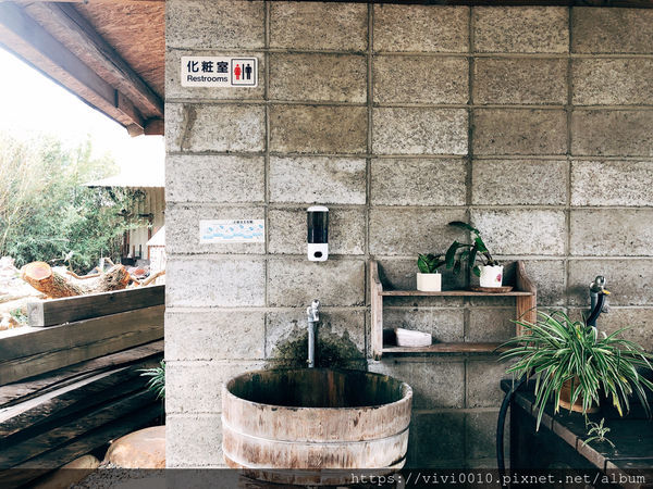 洗手間設計在餐廳外,裝潢也跟餐廳一樣,很有日式風情