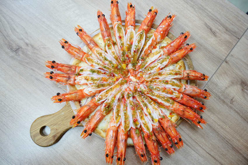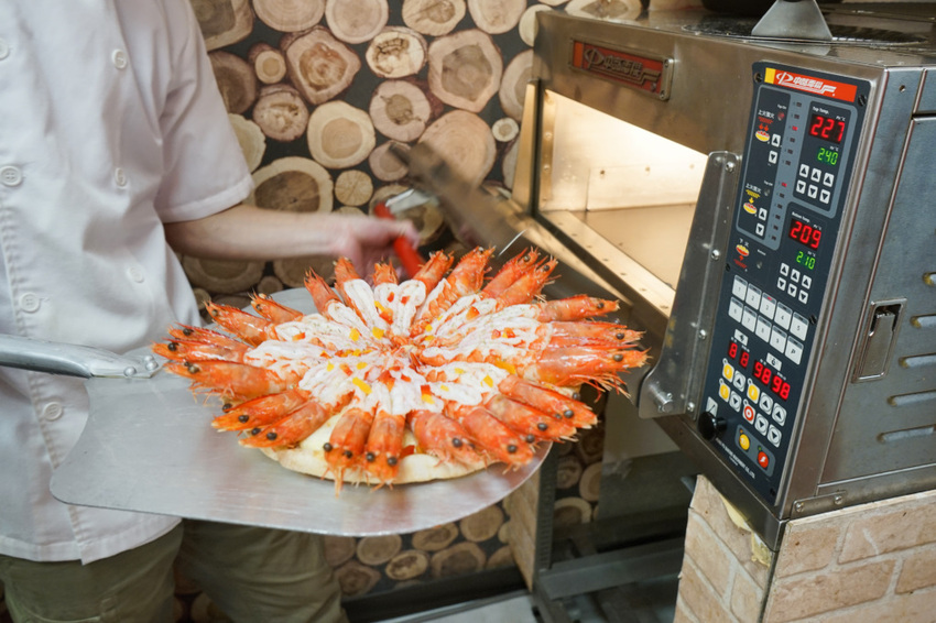 那一隻隻去了殼的美麗大蝦就這樣直接舖在披薩上面,是否有點誇張?!