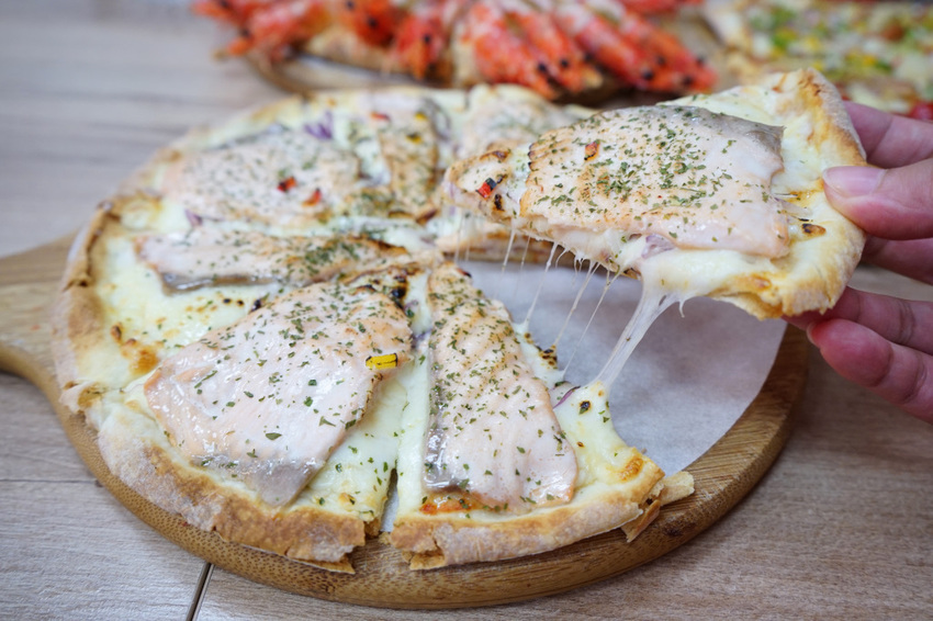 最後一個披薩選了鮭魚,看似正常的口味,食材用料也都比過去吃過的披薩更用心!