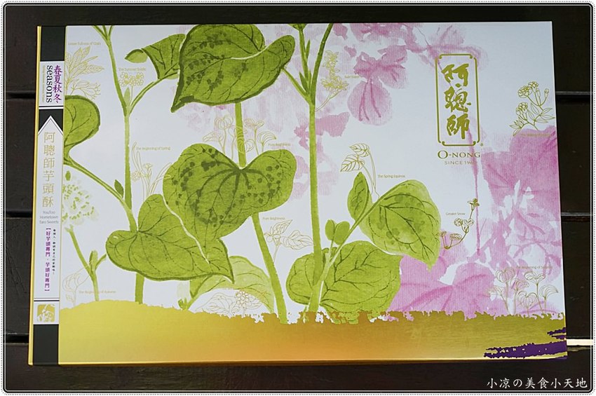 一打開禮盒有著12入芋頭酥(三口味),並有著台灣芋頭酥之父、阿聰師家的產品DM