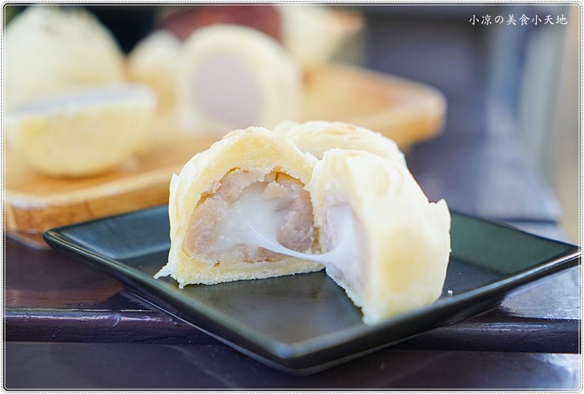 鬆軟綿密的芋頭內餡包裏著Q軟的麻糬,不只是帶出酥皮的細緻、呈現自然微香的酥鬆口感
