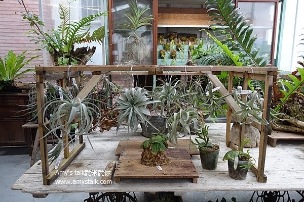 植栽區也很精彩,各種蕨類、空氣鳳梨,搭配木器或鐵器,美不勝收。