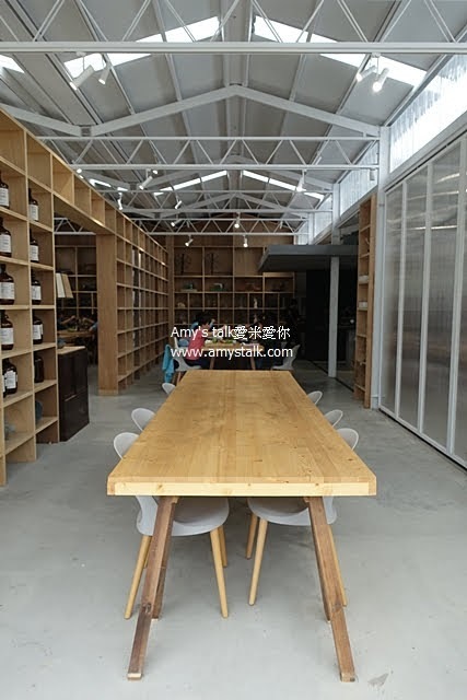 380坪的半開放空間,以高大的木頭格子書架區隔,別以為隨手可從書架上拿書下來閱讀,這裡館藏的是有錢買不到的梅山新鮮空氣哪。部分架上也陳列一些藝術品、老物件跟各種植栽。相信我,就是每個角落都好拍,不信你往下拉,或隨便google空氣圖書館,都是美圖啊!