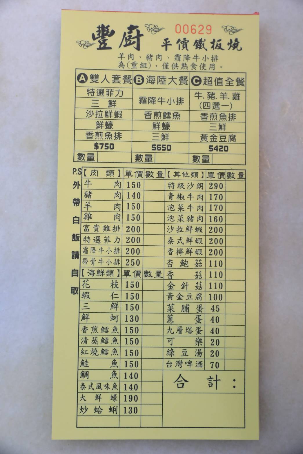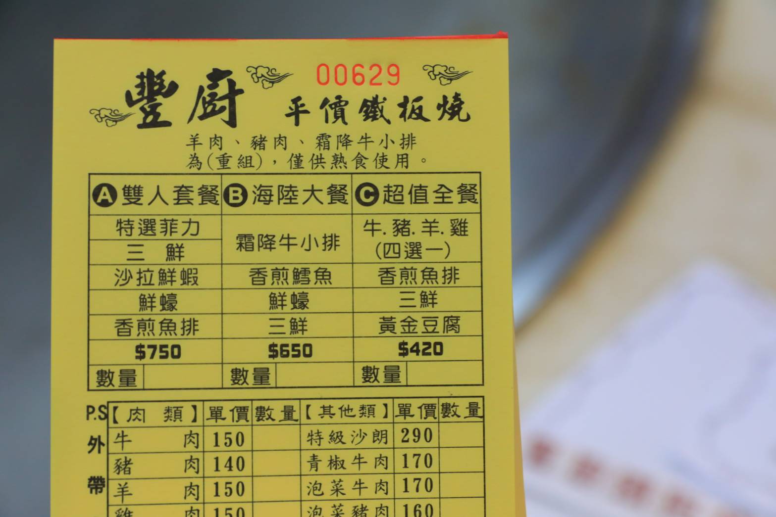 【豐廚平價鐵板燒】菜單上的價格很親民,