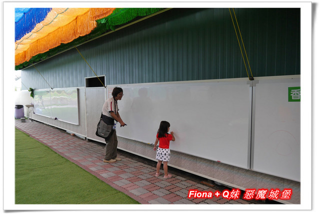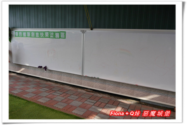 一整面讓遊客可以隨意彩繪創作的香皂臘筆塗鴉牆,直接拿香皂在白板上畫畫,畫完可以很輕易的擦掉,Q妹拉著阿公一起畫的很開心,哈哈 !