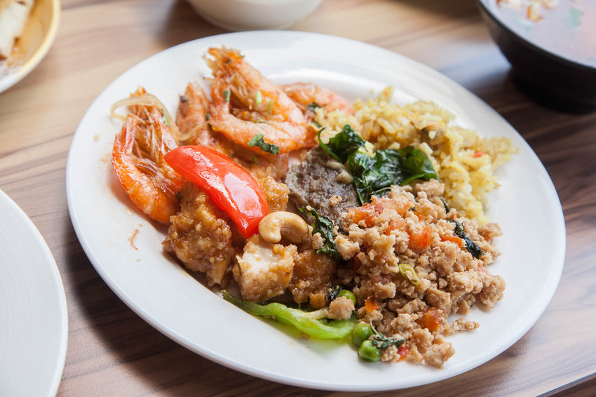 雖然說在吃到飽餐廳吃白飯感覺好像會虧本,但是有打拋豬很難不吃飯呀,吃到飽打拋豬裝到滿也沒人理你,爽啦!