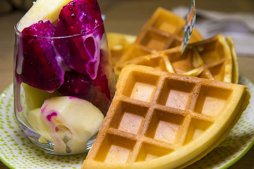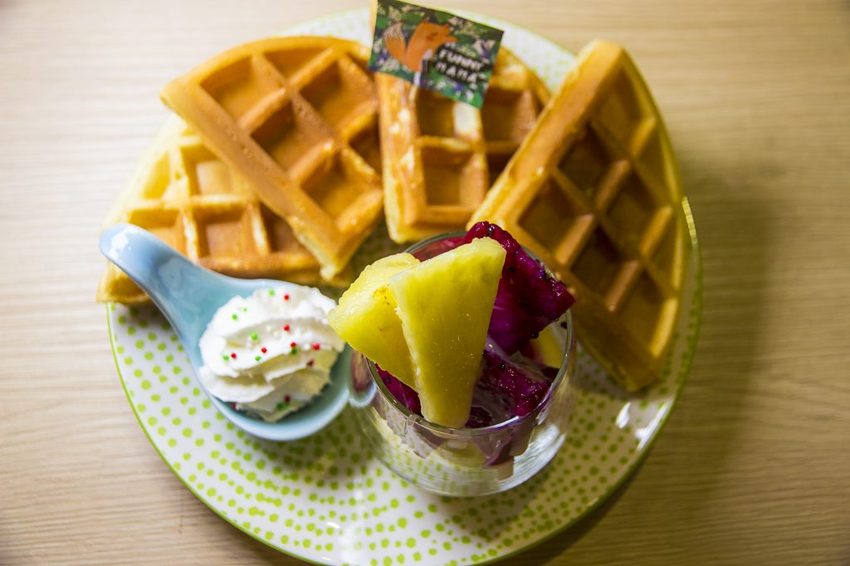 搭配著火龍果、鳳梨、蘋果等季節性水果,不論是當下午茶點心或是餐後甜點都很棒。