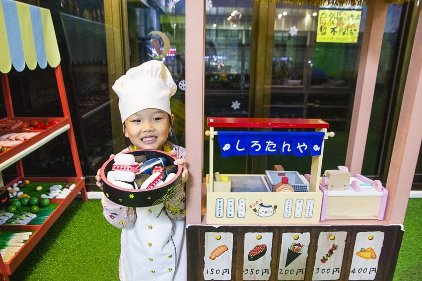 有球池、沙池、溜滑梯、商店街、生鮮超市、家家酒…