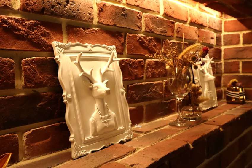 紅磚牆搭配裝飾的小物,很有異國的風情。