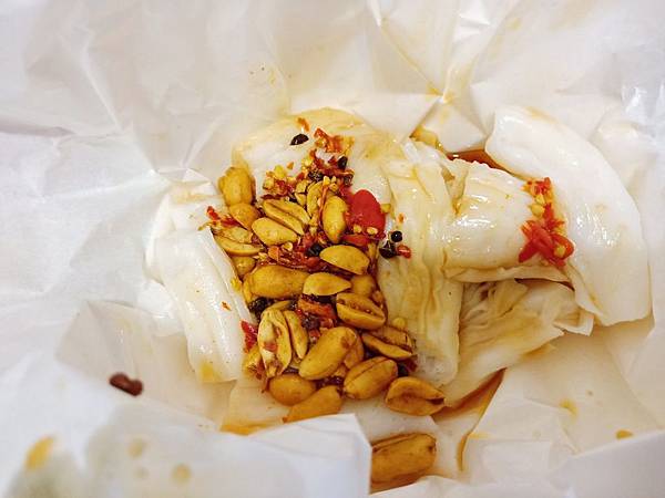 這腸粉是林志穎的哥哥林志杰開的,很特別居然是素的除了蒜香五味跟麻醬雞絲~樂兒選的是香辣椒麻小辣,椒麻香味很夠,好吃,但是好辣阿~