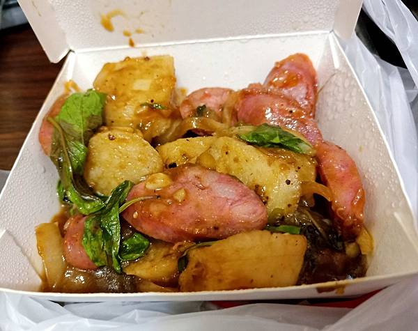 樂兒選的是香腸炒米腸,好像香腸、米腸、豬血糕都可以隨便選,反正二樣就是60元,三樣就是75元~