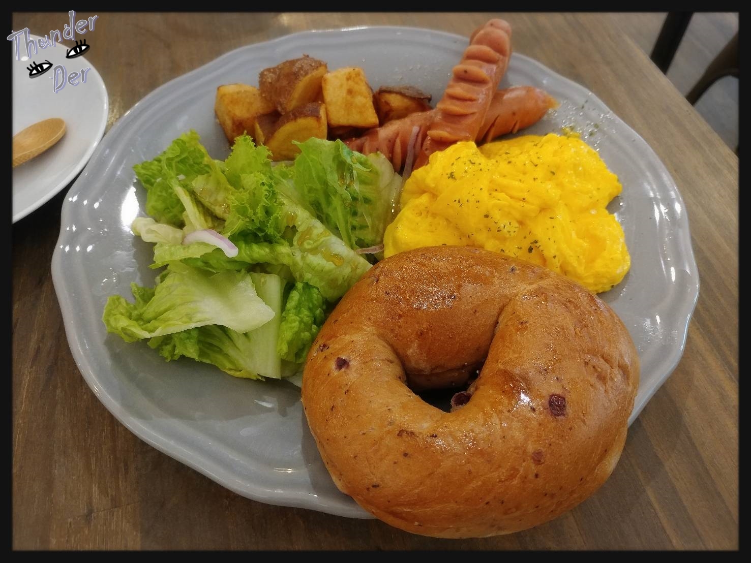 早餐盤五選一的麵包小編點選的是藍莓貝果