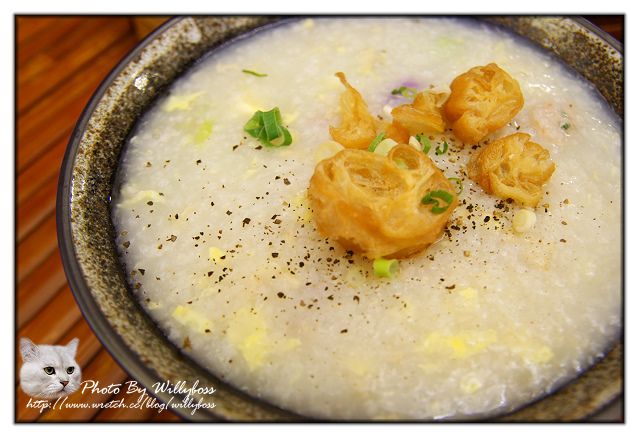 配料有山藥、香菇、竹笙、豬肝、瘦肉、青菜、雞蛋、百花丸,粥的湯頭味道鮮美層次多,吃得出多種食材一起熬煮的真功夫,米飯不會太過細碎,吸附了湯汁的滑順口感也很不錯,豬肝我沒吃到,百花丸應該是類似小肉丸子的東西,搭配著粥吃其實也很對味,讓我想起小時候曾經在新加坡吃到過的肉丸子粥,台灣很少有這樣的粥品說。