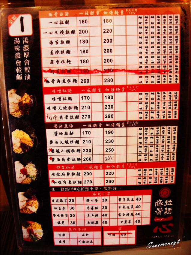 這一頁是豚骨白湯為主的一心拉麵👉一般量$160,加倍麵量$180
