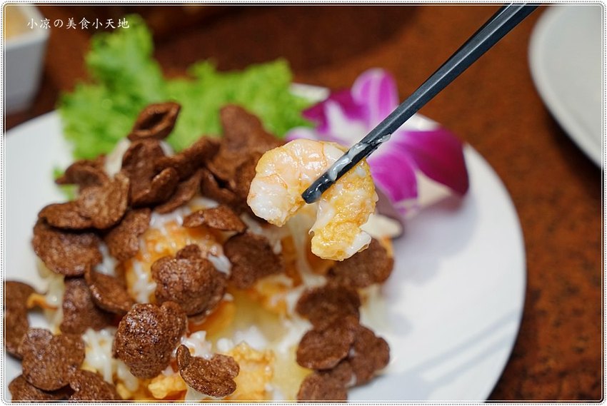 以整隻白蝦去殼再裹粉油炸的金黃蝦球,最好趁熱馬上食用,才能品嚐到蝦球的香、酥、脆口感
