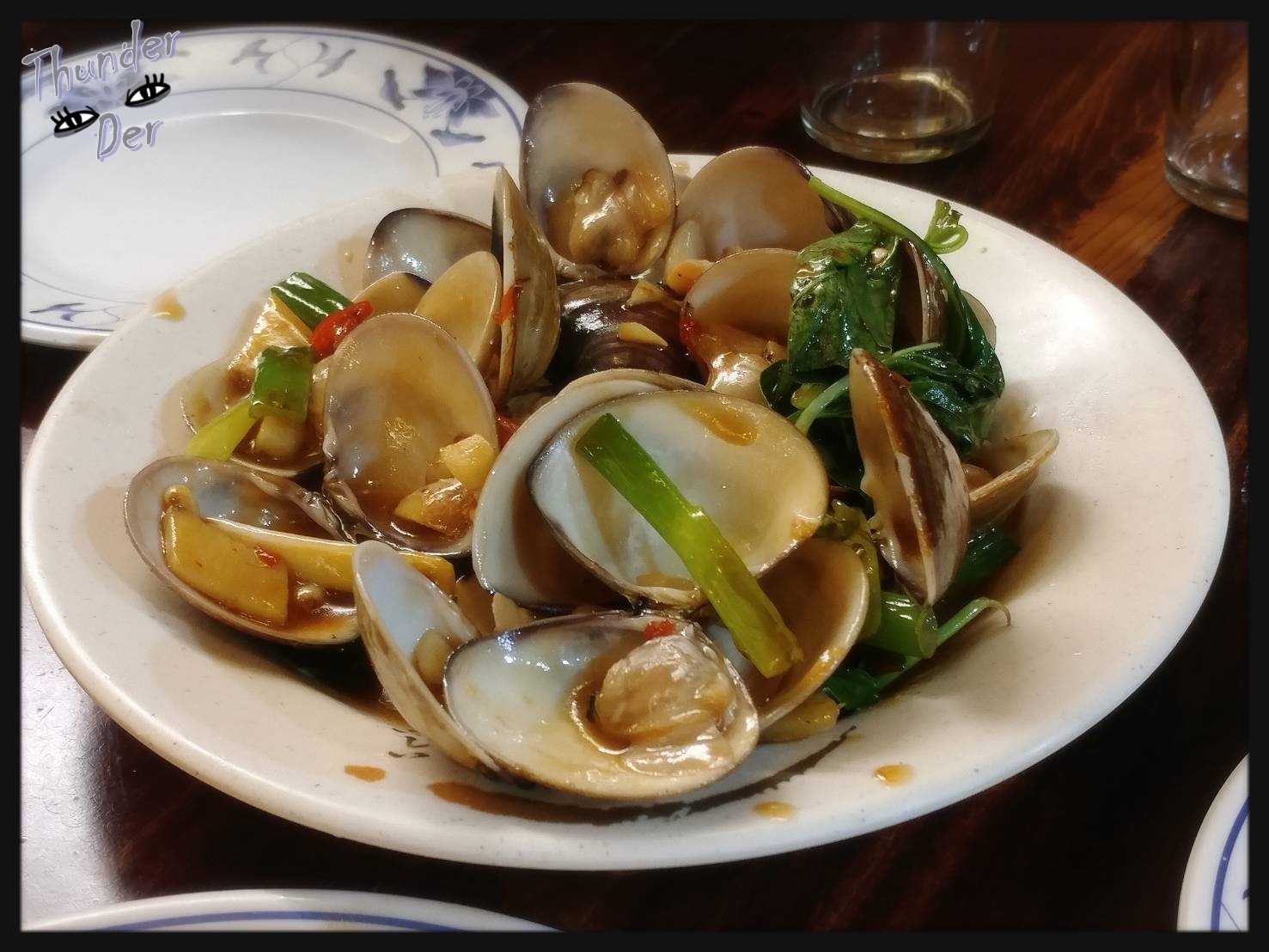 再來最後一道炒蛤蠣,看到一個個像蝴蝶結形狀開口的蛤蠣