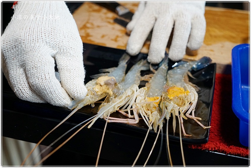 嚴選的泰國蝦對切後蝦肉透光,滿滿的蝦膏,光看就滿足~