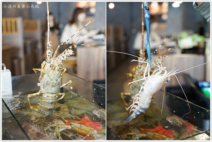接著看著工作人員推了一卡水族箱出來,裡面裝滿了十種甲殼類跟生猛海鮮