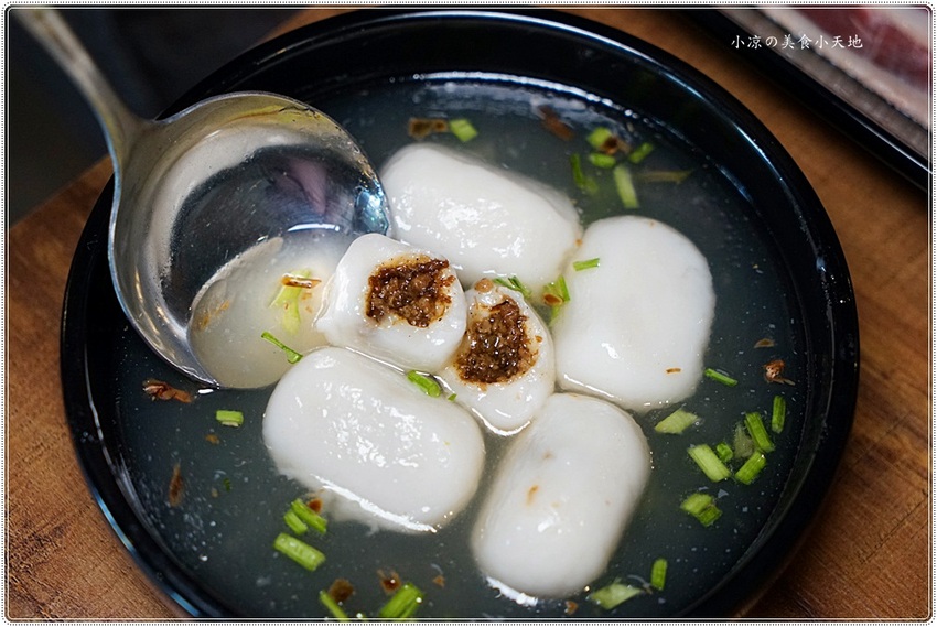 手工客家湯圓,湯頭清甜好喝,入嘴外皮的厚度香Q,內餡鹹香有勁~