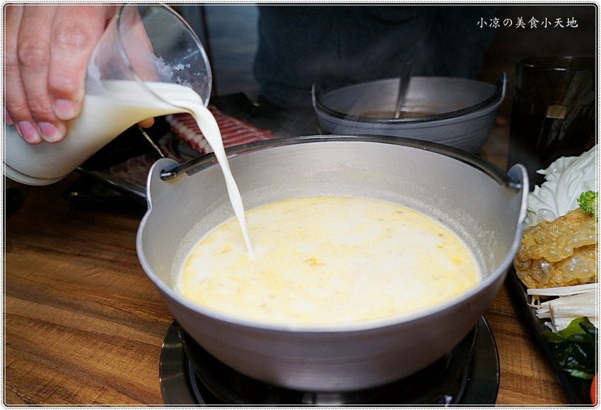 牛奶鍋,以鮮奶、起司去交融出奶香濃醇的風味,覺得味道不夠可以再自行加入隨鍋附鮮奶喔!