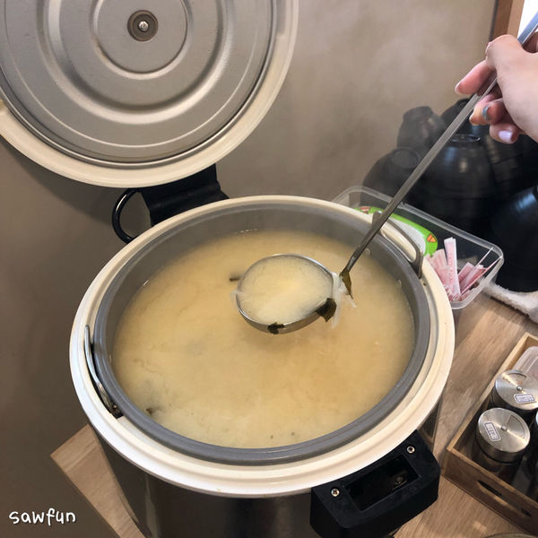 味噌湯品可免費續加,洋蔥味十足很清甜