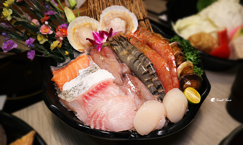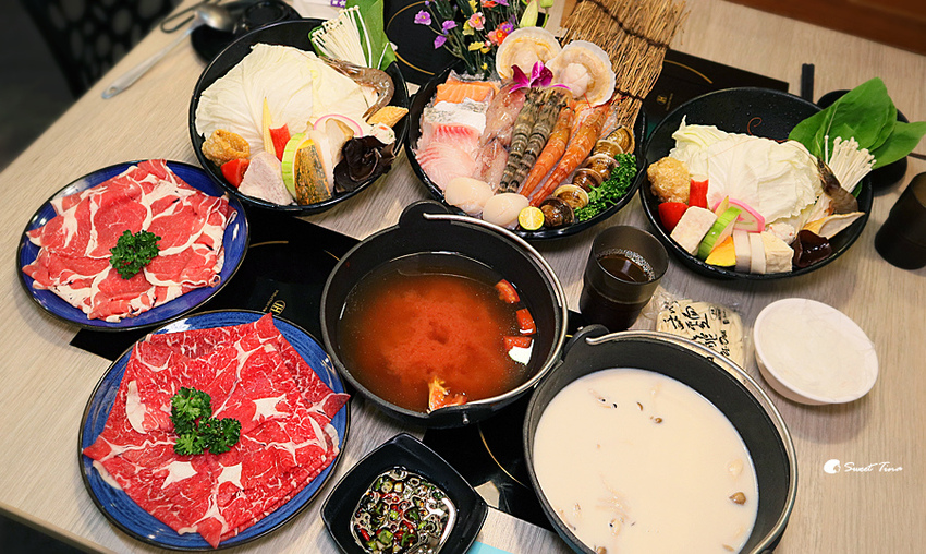 這次我們的餐點是沐澄雙人尊榮饗宴,搭配的海鮮好豐富,還可以吃到二種肉品、二種鍋底,真的超滿足的。
