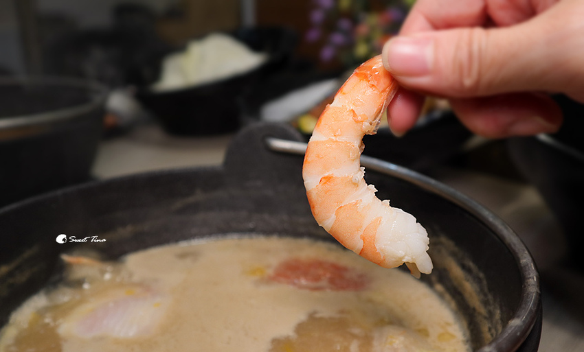 天使紅蝦的肉飽滿又彈牙,加入哪一鍋都一樣美味。
