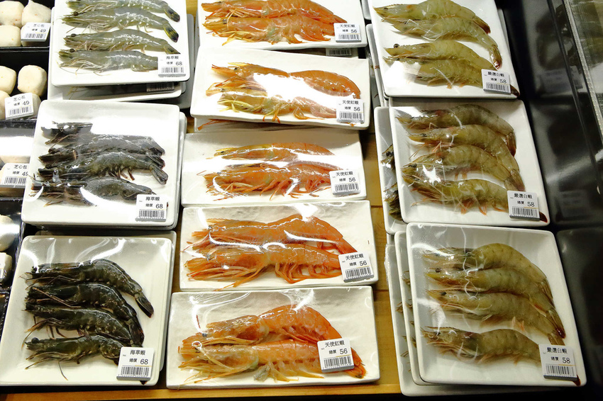 看著冷藏櫃裡的各式海鮮,種類真的不少,各式蝦類、魚類、大生蠔,還有各式火鍋料