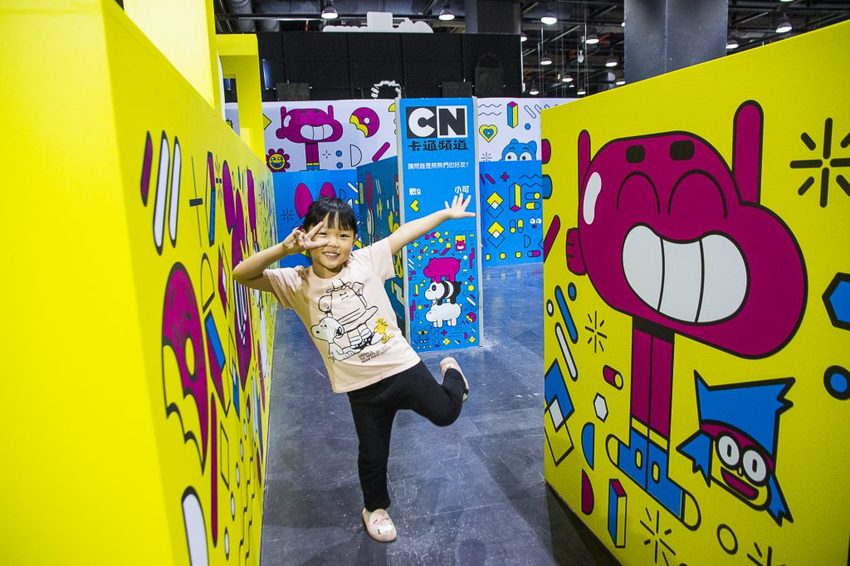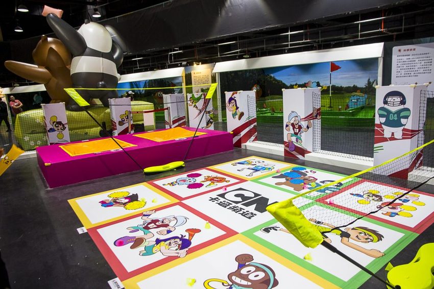 入口處有卡通頻道人物的大型拍照牆,還有飛天小女警的大型人物充氣造型,
