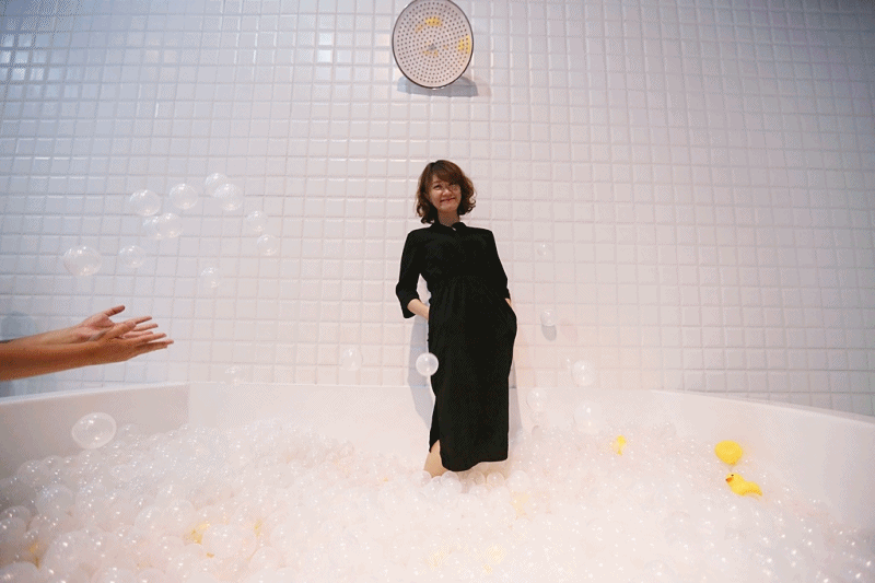 第一個球池,上頭還有假的蓮蓬頭,心愛a與浴缸內的泡泡及黃色小鴨翩翩飛舞,來到這裡小朋友玩瘋了,當然更是女孩們不能錯過的拍照聖地!