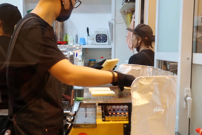 另一位則負責烤吐司。聽說可蜜達comida林森本店已經不烤吐司了,但北門店依然有烤,用的是瓦斯烤。
